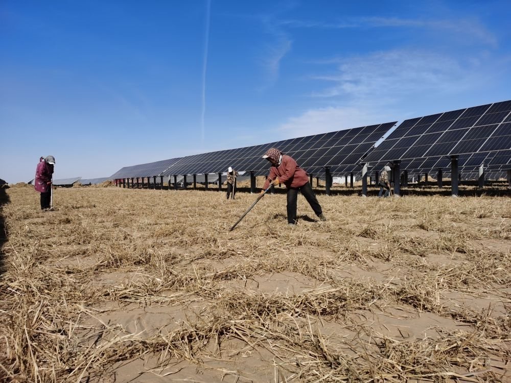 烏蘭布和沙漠總面積1500多萬畝,沙漠治理將大規(guī)模采用“板上發(fā)電、板下種植、治沙改土、帶動(dòng)鄉(xiāng)村振興”四位一體產(chǎn)業(yè)發(fā)展模式,努力把沙海變?yōu)椤熬G?!?。