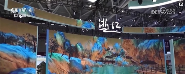 浙江用全場(chǎng)景曲面屏,展示 “良渚文化”“大運(yùn)河文化”特色,詩(shī)畫(huà)江南躍然眼前。