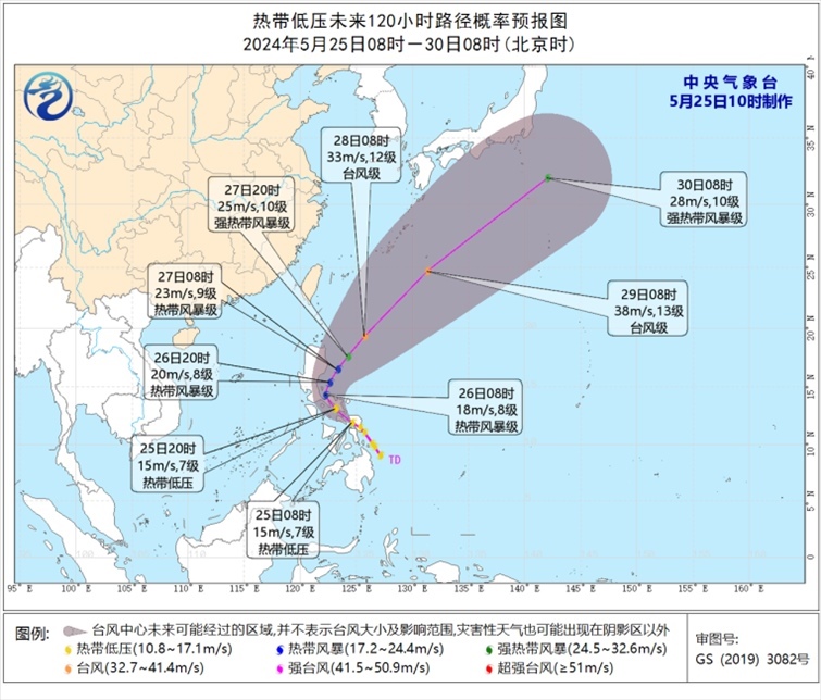 預(yù)計(jì),低壓中心將以每小時(shí)15至20公里的速度向西北方向移動(dòng),強(qiáng)度緩慢增強(qiáng),將于未來24小時(shí)內(nèi)加強(qiáng)為今年第1號(hào)臺(tái)風(fēng),26至27日將在菲律賓呂宋島東部海面逐漸轉(zhuǎn)向東北方向移動(dòng)。