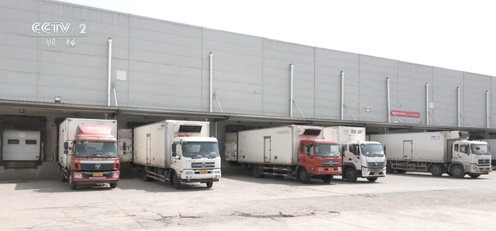 在北京的一個生鮮冷庫,不少冷鏈運輸車正在裝配即將發(fā)往銷售門店的果蔬。由于今年市場對應季果蔬的需求大,加之冷鏈效率提升,這讓冷庫的整體出貨量激增。