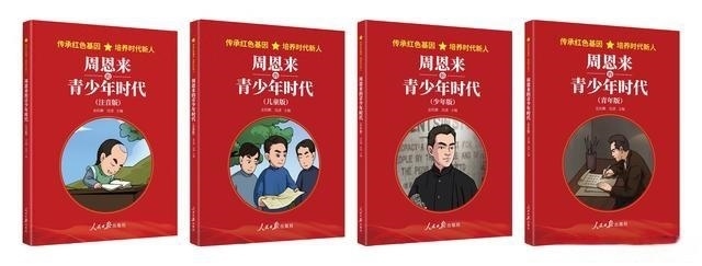 根據(jù)中共中央辦公廳印發(fā)的《關(guān)于推動(dòng)黨史學(xué)習(xí)教育常態(tài)化長(zhǎng)效化的意見(jiàn)》,以及教育部辦公廳印發(fā)的《關(guān)于在思政課中加強(qiáng)以黨史教育為重點(diǎn)的“四史”教育的通知》,2020年,在人民日?qǐng)?bào)社副總編輯方江山的策劃和支持下,出版社約請(qǐng)時(shí)任中國(guó)社會(huì)科學(xué)院近代史所黨委書記金民卿和周恩來(lái)侄外孫、北京大鸞翔宇慈善基金會(huì)理事長(zhǎng)沈清,主編“傳承紅色基因,培養(yǎng)時(shí)代新人”叢書。該叢書首批圖書包括《毛澤東的青少年時(shí)代》《周恩來(lái)的青少年時(shí)代》,書中截取了毛澤東、周恩來(lái)青少年時(shí)期的光輝片段,講述其成長(zhǎng)、學(xué)習(xí)經(jīng)歷和積極投身革命的艱辛歷程。同時(shí),考慮到不同年齡段學(xué)生的閱讀水平,又將圖書分為注音版、兒童版、少年版、青年版四個(gè)版本,用青少年喜聞樂(lè)見(jiàn)的方式,采取圖文并茂的形式,引導(dǎo)廣大青少年從小在心里深植紅色基因,樹(shù)立紅色理想。