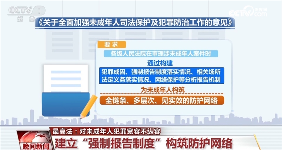 此外,《意見》還要求各級人民法院在審理涉未成年人案件時通過構(gòu)建犯罪成因、強制報告制度落實情況、相關(guān)場所法定義務(wù)落實情況、網(wǎng)絡(luò)保護(hù)等分析報告機(jī)制,為未成年人構(gòu)筑全鏈條、多層次、見實效的防護(hù)網(wǎng)絡(luò)。