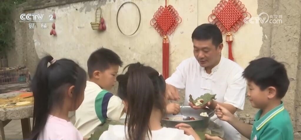 在河南南陽黃臺(tái)崗鎮(zhèn)一處農(nóng)家小院里,孩子們正圍坐在圓桌旁,跟大人們一起學(xué)著制槲包。和其他地方用葦葉不同,這里的粽子用的是當(dāng)?shù)靥赜械拈螛涞娜~子,不僅防腐,而且味道清香,相較于傳統(tǒng)的錐型粽,槲包呈長方形,吃起來也別有風(fēng)味。