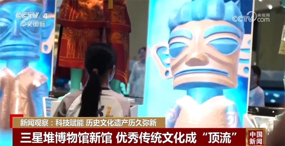 廣漢三星堆博物館副館長余健介紹:“通過各種沉浸式、數(shù)字化的方式,讓收藏在博物館里的文物‘活’起來,把中華文明起源發(fā)展的歷程生動展現(xiàn)出來。讓人們從數(shù)千年沉淀的中華文化基因中獲取精神力量,增強(qiáng)文化自信。”