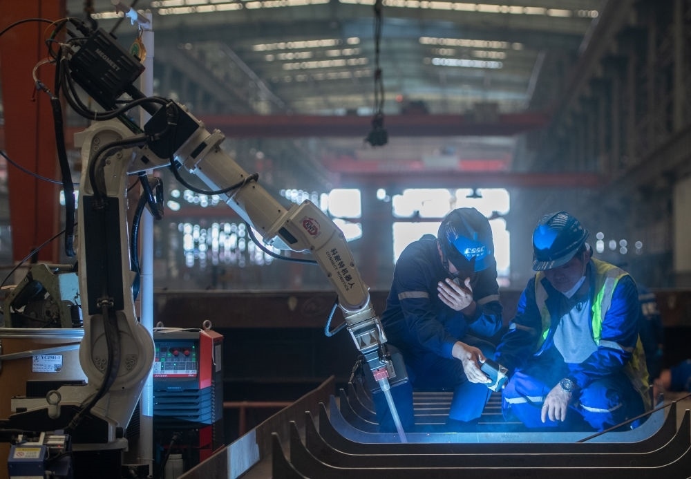 2024年5月16日,工作人員在湖北省武漢市新洲區(qū)武昌船舶重工集團有限公司查看焊接機器人焊接的焊縫。近年來,該公司圍繞新型公務(wù)船、高端海工船、中小型綠色智能油化船和支線集裝箱船等主建船型,積極推進數(shù)字化轉(zhuǎn)型與智能制造,助力航運高質(zhì)量發(fā)展。