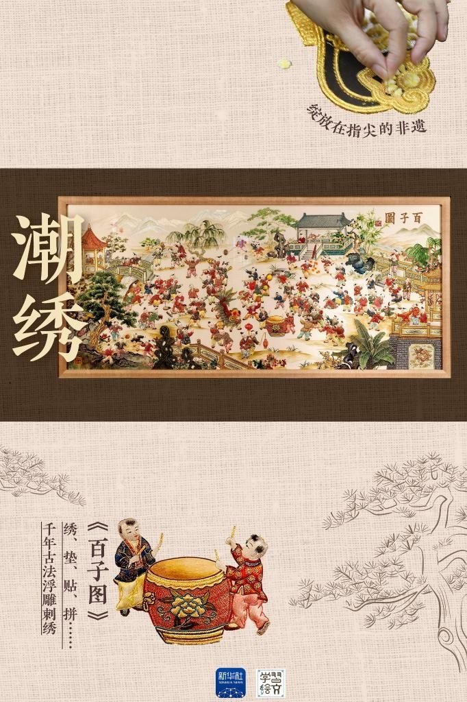 潮繡,屬我國四大名繡中的粵繡門派,最大的特點是立體墊高,以繡藝精美細致、構(gòu)圖均衡飽滿著稱,色彩亮麗又具立體感。