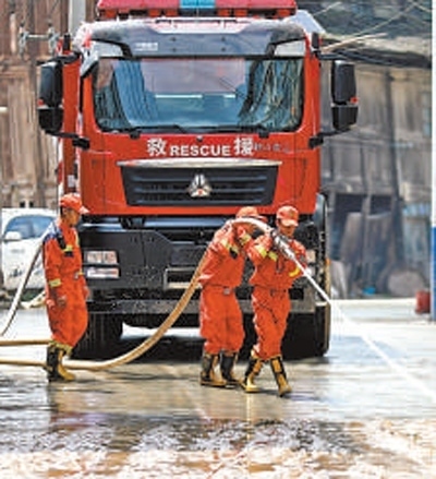 6月17日,消防人員在福建省龍巖市武平縣象洞鎮(zhèn)開展救援。周楊東攝(新華社發(fā))