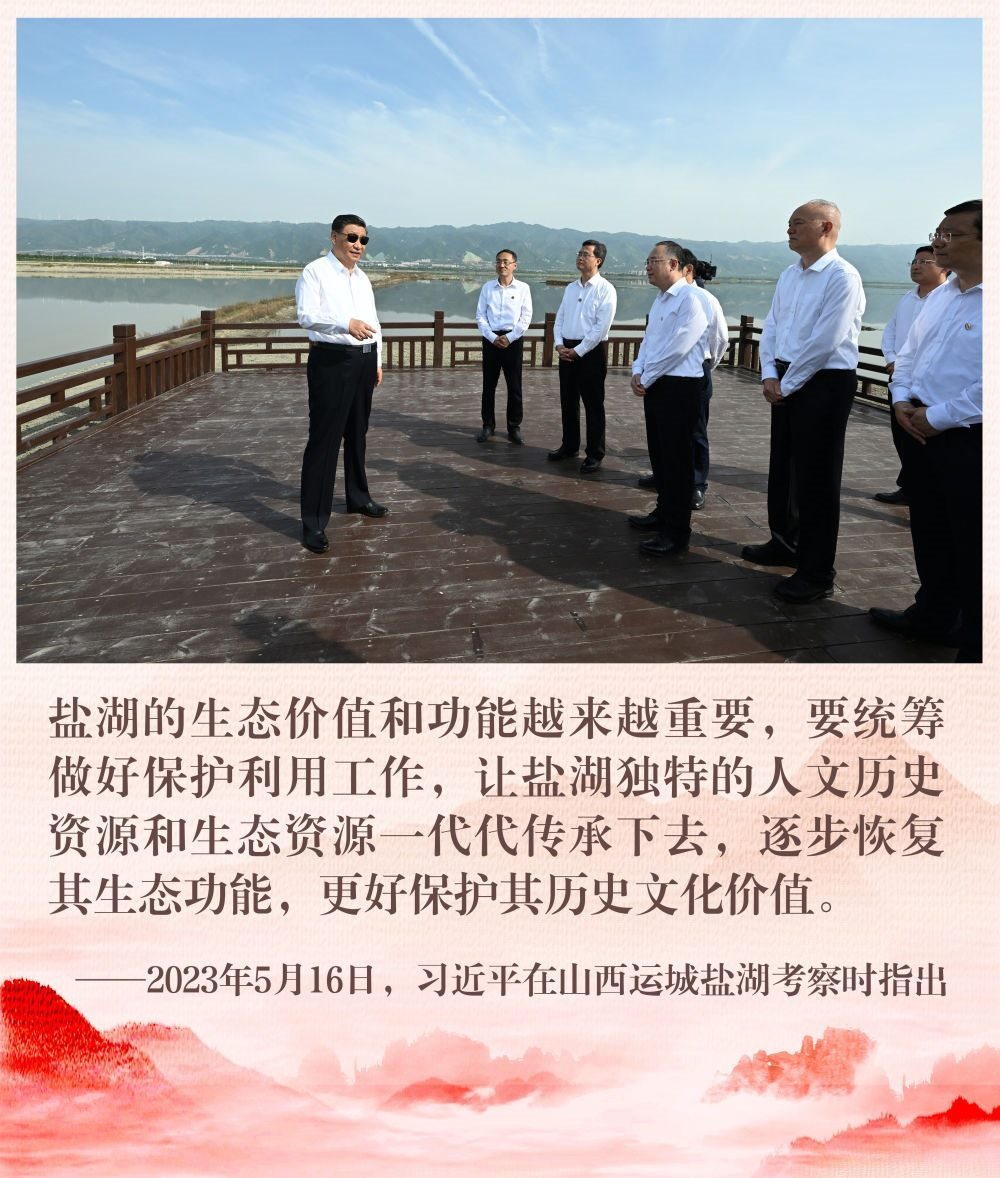 2023年5月16日,習(xí)近平總書記在山西運(yùn)城鹽湖考察時(shí),對(duì)鹽湖保護(hù)利用作出重要指示。