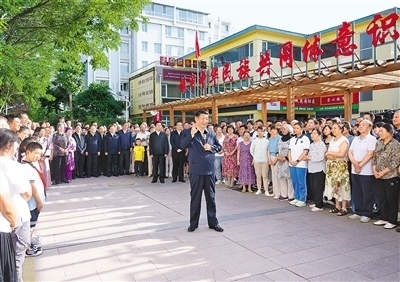 傍晚時(shí)分,社區(qū)廣場(chǎng)十分熱鬧,居民們看見(jiàn)總書(shū)記來(lái)了,紛紛圍攏過(guò)來(lái),熱烈鼓掌歡迎。習(xí)近平親切地對(duì)大家說(shuō),時(shí)隔4年,我再次來(lái)寧夏看望各族干部群眾,見(jiàn)到大家非常高興!中華民族是一個(gè)大家庭,各族人民要像石榴籽一樣緊緊抱在一起。要不斷鑄牢中華民族共同體意識(shí),把各族人民的心緊緊連在一起,把各方面的力量廣泛凝聚到一起,共同推進(jìn)中國(guó)式現(xiàn)代化,共襄中華民族偉大復(fù)興的盛舉。