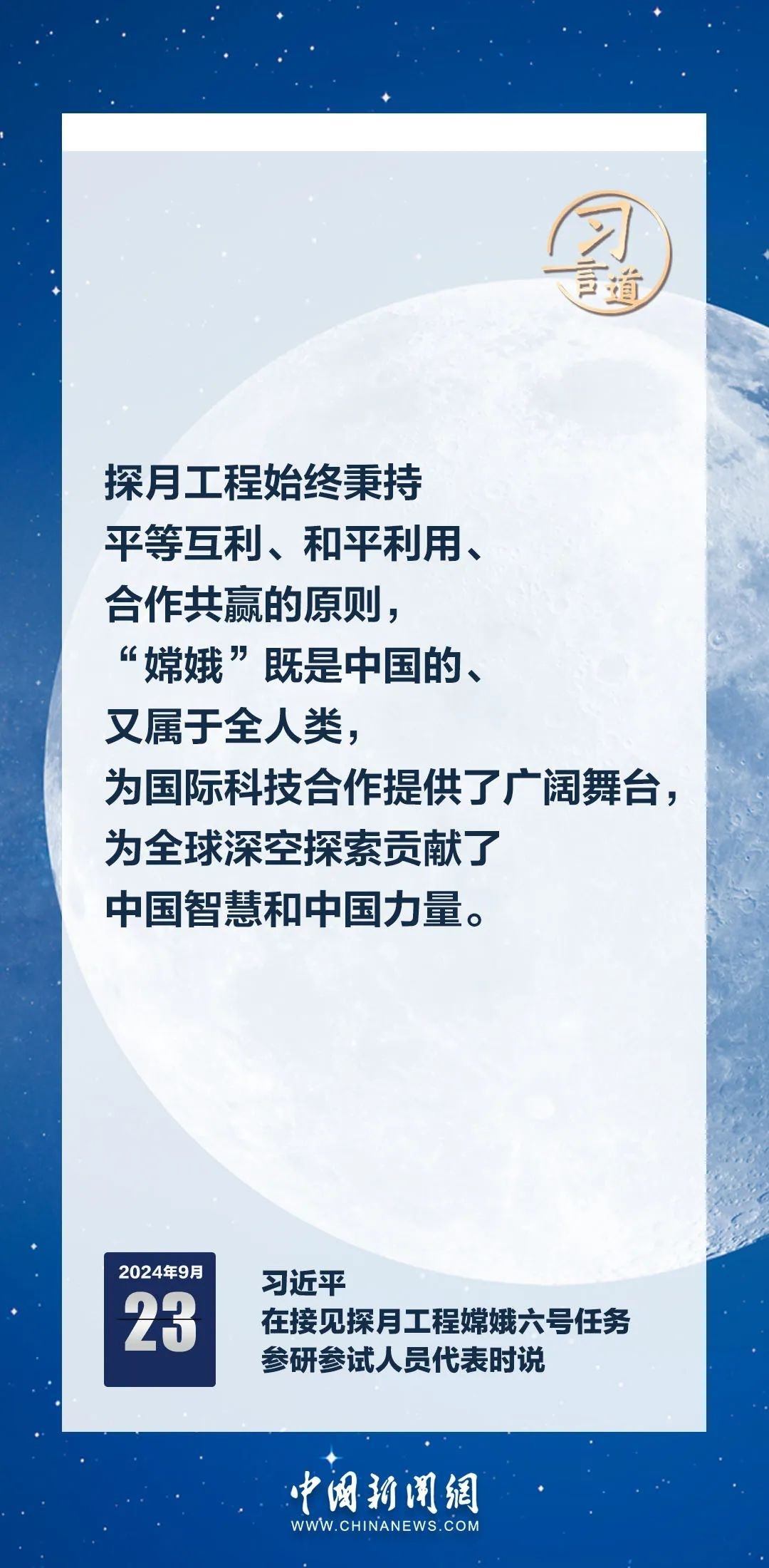 中共中央總書(shū)記、國(guó)家主席、中央軍委主席習(xí)近平23日在人民大會(huì)堂接見(jiàn)探月工程嫦娥六號(hào)任務(wù)參研參試人員代表時(shí)發(fā)表重要講話。習(xí)近平指出——