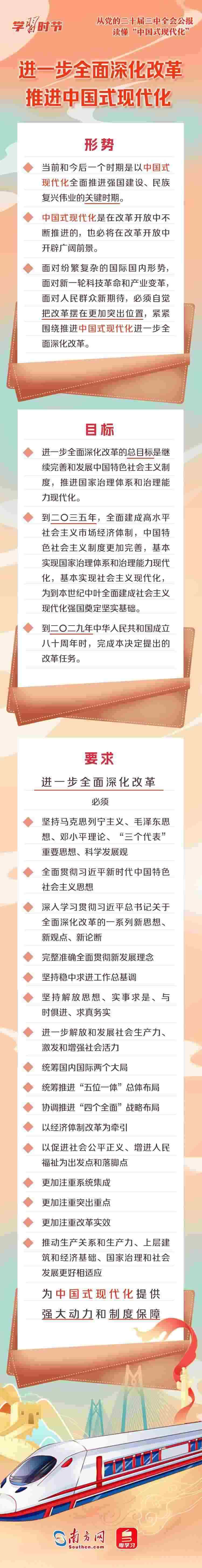 中國式現(xiàn)代化是中國共產(chǎn)黨和中國人民長期實踐探索的成果,是一項偉大而艱巨的事業(yè)。全會公報中,“中國式現(xiàn)代化”一詞被反復提及,深刻闡述了進一步全面深化改革與推進中國式現(xiàn)代化的關系,以及中國式現(xiàn)代化的重要保障、必然要求、本質要求等重要內(nèi)容。一起來學習!