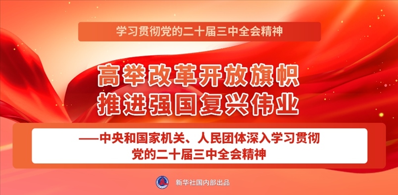 點擊標(biāo)題看詳情:高舉改革開放旗幟 推進(jìn)強(qiáng)國復(fù)興偉業(yè)——中央和國家機(jī)關(guān)、人民團(tuán)體深入學(xué)習(xí)貫徹黨的二十屆三中全會精神