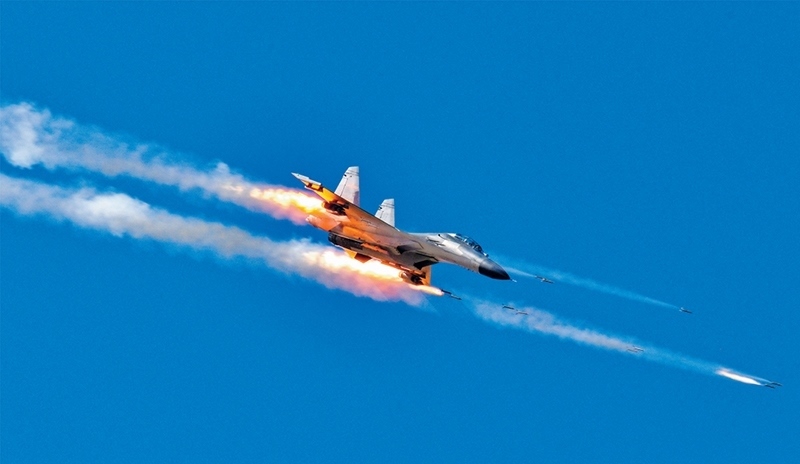 西部戰(zhàn)區(qū)空軍航空兵某旅緊貼任務(wù)需要,堅持不懈大抓實(shí)戰(zhàn)化軍事訓(xùn)練,加強(qiáng)重難點(diǎn)課目專攻精練。圖為2023年10月該旅在訓(xùn)練中發(fā)射火箭彈。 喻澤琪/攝