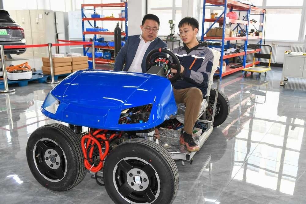 2024年3月13日,在吉林長(zhǎng)春一家汽車科技企業(yè),吉林大學(xué)汽車工程學(xué)院教授靳立強(qiáng)(左)試乘智能底盤樣車。2023年,長(zhǎng)春市科技局和吉林大學(xué)共建吉林大學(xué)概念驗(yàn)證中心,一手對(duì)接高校,一手對(duì)接企業(yè),確??蒲谐晒诩夹g(shù)路線和商業(yè)模式上的可行性,實(shí)現(xiàn)“從0到1”的轉(zhuǎn)化。
