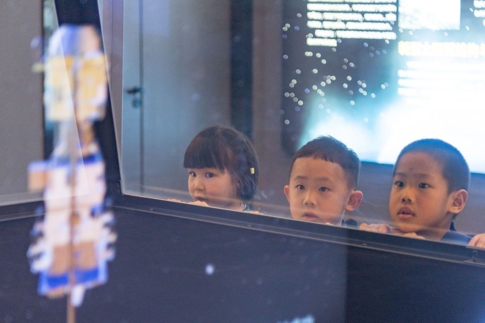 2024年4月24日,小朋友在哈爾濱工業(yè)大學(xué)航天館內(nèi)參觀。航天館是哈爾濱工業(yè)大學(xué)重要的教學(xué)基地,也是向社會(huì)公眾開(kāi)展航天國(guó)防教育、弘揚(yáng)航天精神的重要場(chǎng)所,被授予首批全國(guó)科普教育基地、首批國(guó)家航天局航天科普教育基地、全國(guó)中小學(xué)生研學(xué)實(shí)踐教育基地等。