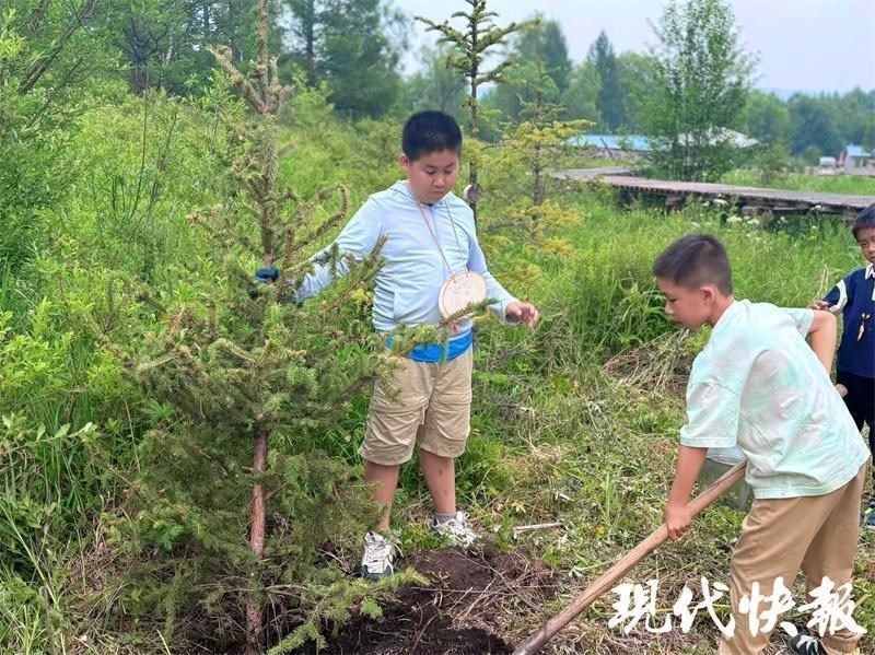這樣的美麗風(fēng)景讓第一次來到大草原的周云昊很興奮?!拔覀儚漠?shù)亓私獾?,這是一代又一代人努力的結(jié)果,讓我們也深切感受到生態(tài)保護的重要性。”研學(xué)途中,周云昊和小伙伴們還專門在當?shù)亓謭龇N下一棵樹?!跋M芙】甸L大,成為守護綠色草原的小衛(wèi)士。”