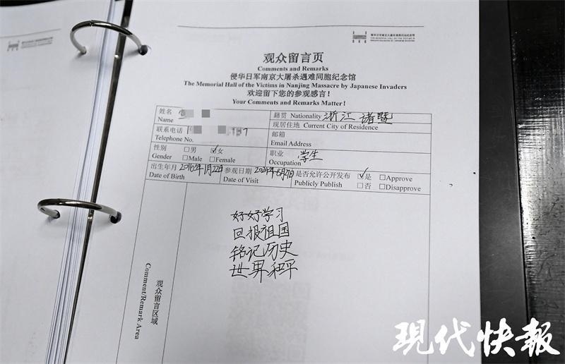 “好好學(xué)習(xí),回報祖國”“吾輩當自強”“振興中華,責(zé)任在我們這一代”……暑假進入尾聲,侵華日軍南京大屠殺遇難同胞紀念館觀眾隊伍里,孩子們的身影依舊不少。在紀念館留言簿上,他們用稚嫩的筆跡留下一句句和平心聲。