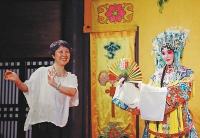 江蘇南通伶工學(xué)社內(nèi),外國(guó)學(xué)生身著戲服學(xué)習(xí)京劇。馮凱敏攝(影像中國(guó))