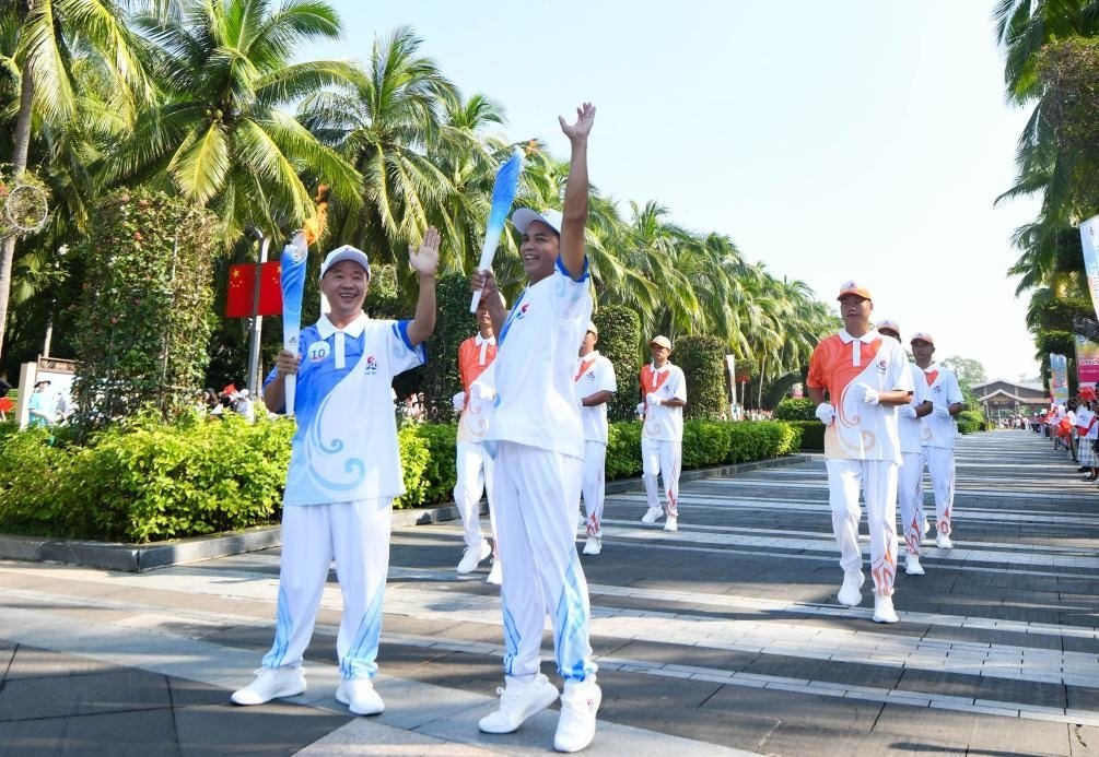 科技元素是本屆運(yùn)動(dòng)會(huì)一大亮點(diǎn)。在本月進(jìn)行的采火儀式上,以可燃冰作為燃料的火炬引人注目。據(jù)介紹,這是“探索二號(hào)”科考船為運(yùn)動(dòng)會(huì)采集的可燃冰,由潛航員通過(guò)保壓取樣器采集并帶回陸地?;鹁嬖O(shè)計(jì)團(tuán)隊(duì)表示,這象征科技的力量,也寓意海南自貿(mào)港發(fā)展的無(wú)限潛力。本屆運(yùn)動(dòng)會(huì)還開(kāi)啟了“科技奇妙之旅”,市民游客打開(kāi)小程序“相約民族運(yùn)動(dòng)會(huì)”,選擇城市、定制專(zhuān)屬AI形象、上傳照片、傳遞火炬,便可“解鎖”自己的火炬手形象,成為一名“數(shù)字火炬手”。