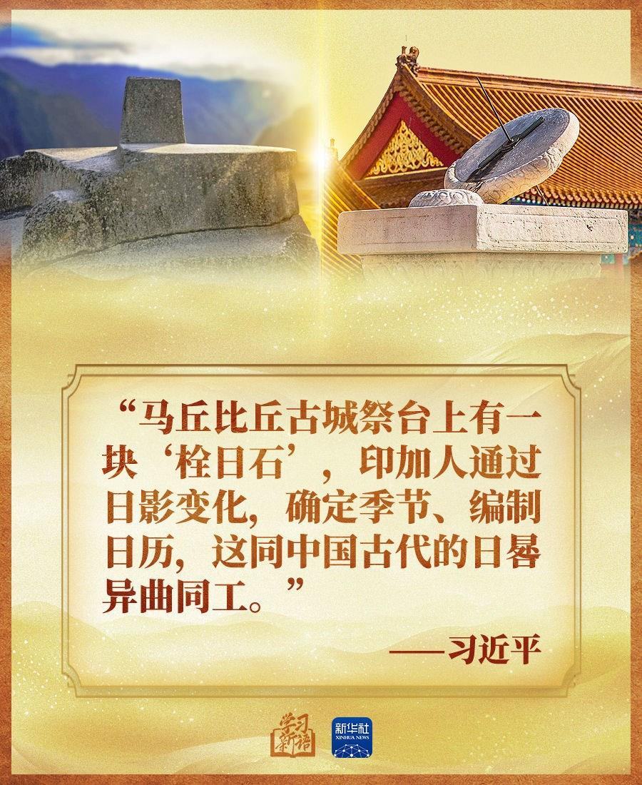 習近平在文章中指出,中華文明是世界上唯一沒有中斷、延綿5000多年的文明,以卡拉爾文明為代表的海洋文明和以印加文明為代表的陸地文明彰顯了秘魯文明的歷史悠久和豐富多元。