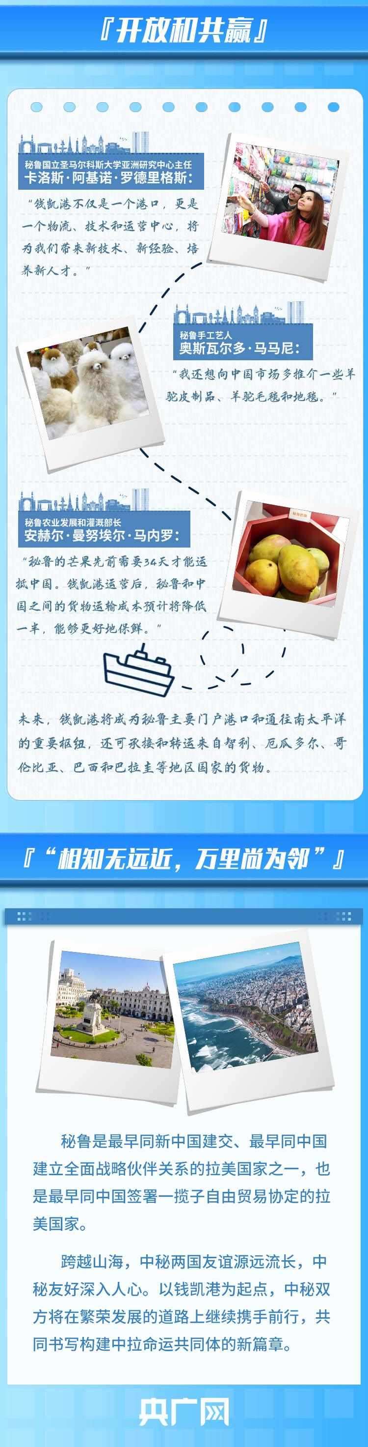 錢凱港位于秘魯首都利馬以北80公里,是中秘共建“一帶一路”重點項目。開港后,中秘間單程海運時間將縮短至23天,節(jié)約20%以上的物流成本,每年將為秘魯創(chuàng)造逾8000個直接就業(yè)機會。