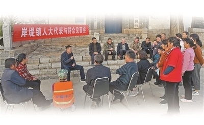 山東沂南縣岸堤鎮(zhèn)人大組織人大代表與群眾見面,征集立法意見建議。桑文彬攝