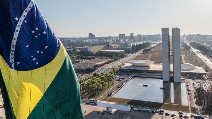 這是2024年7月16日在巴西首都巴西利亞拍攝的國(guó)會(huì)大廈(無人機(jī)照片)。新華社記者 王天聰 攝