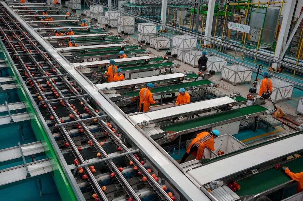 9月29日,工作人員在昭通市超越蘋果基地蘋果分選線上工作。金秋時節(jié),位于烏蒙山區(qū)的云南省昭通市迎來了蘋果豐收季。近年來,昭通市大力發(fā)展蘋果產(chǎn)業(yè),將其作為鞏固拓展脫貧攻堅成果、推進(jìn)鄉(xiāng)村振興的重要支柱產(chǎn)業(yè)。2023年,全市蘋果綜合產(chǎn)值達(dá)到130億元,蘋果成為了群眾的增收致富果。新華社記者陳欣波攝