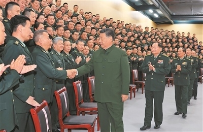 十二月四日,中共中央總書記、國家主席、中央軍委主席習近平視察信息支援部隊,代表黨中央和中央軍委,對信息支援部隊第一次黨代表大會的召開表示熱烈祝賀,向信息支援部隊全體官兵致以誠摯問候。這是習近平同代表們親切握手。新華社記者 李 剛攝
