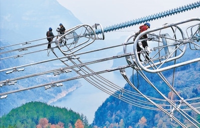 西南深山,電力工人在百米高空“走鋼絲”安裝間隔棒,讓導線保持安全距離;中部平原,機械設備在占地約360畝的終端換流站忙碌作業(yè),電纜敷設量超過1100公里……眼下,近萬名建設者正齊心協(xié)力,加快建設金沙江上游至湖北±800千伏特高壓直流輸電工程(以下簡稱“金上至湖北特高壓”)。