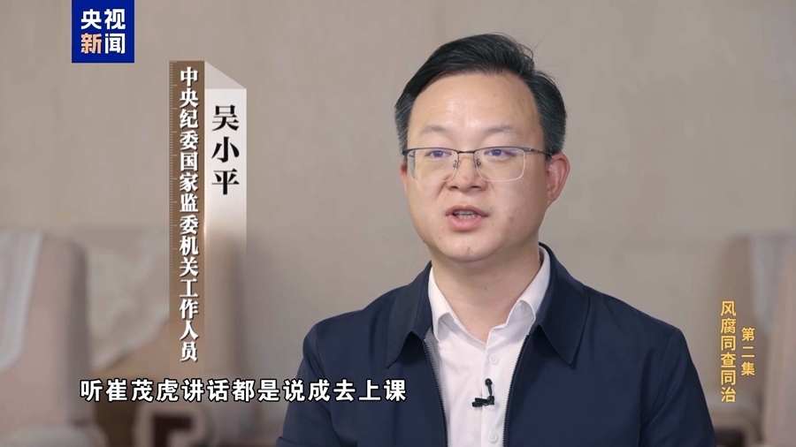 中央紀委國家監(jiān)委機關工作人員 吳小平:崔茂虎特別能講,講起工作來都是長篇大論的,所以麗江當?shù)匾恍└刹棵看稳ラ_會,聽崔茂虎講話都說成去上課,去聽崔老師講課,實際上散了會就開始到別墅里面跟商人老板在一起吃喝玩樂。