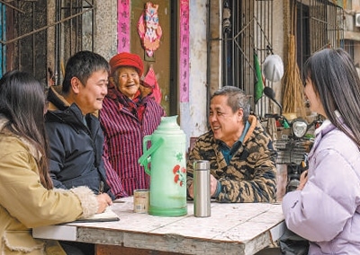 四川省自貢市沿灘區(qū)鄧關街道鹽業(yè)社區(qū)干部聽取群眾對老舊小區(qū)改造的意見建議。