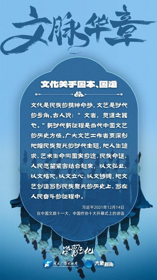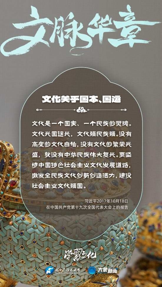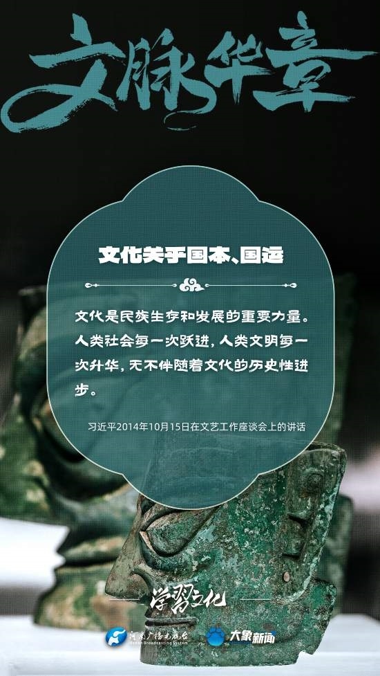 習(xí)近平總書記高度重視文化之于國家、之于民族的重大意義,強(qiáng)調(diào):文化是一個國家、一個民族的靈魂。文化興國運(yùn)興,文化強(qiáng)民族強(qiáng)。沒有高度的文化自信,沒有文化的繁榮興盛,就沒有中華民族偉大復(fù)興。大象新聞梳理了習(xí)近平總書記的系列重要論述,我們一起學(xué)習(xí)。