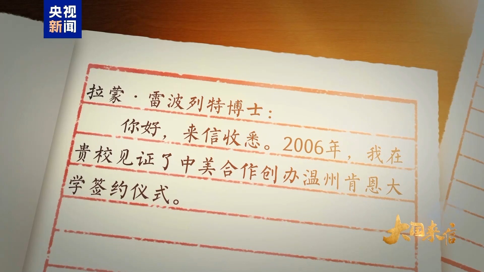 錦書云中來,尺牘傳深情。2006年,時任浙江省委書記習(xí)近平在美國肯恩大學(xué)見證了中美合作創(chuàng)辦溫州肯恩大學(xué)的簽約儀式。自2014年設(shè)立以來,溫州肯恩大學(xué)不僅培養(yǎng)了數(shù)千名中外學(xué)子,還推動了中美兩國青年一代的友好交流。去年6月,習(xí)主席復(fù)信美國肯恩大學(xué)校長拉蒙·雷波列特,鼓勵中美兩國高校加強(qiáng)交流合作,為促進(jìn)中美友好貢獻(xiàn)力量。