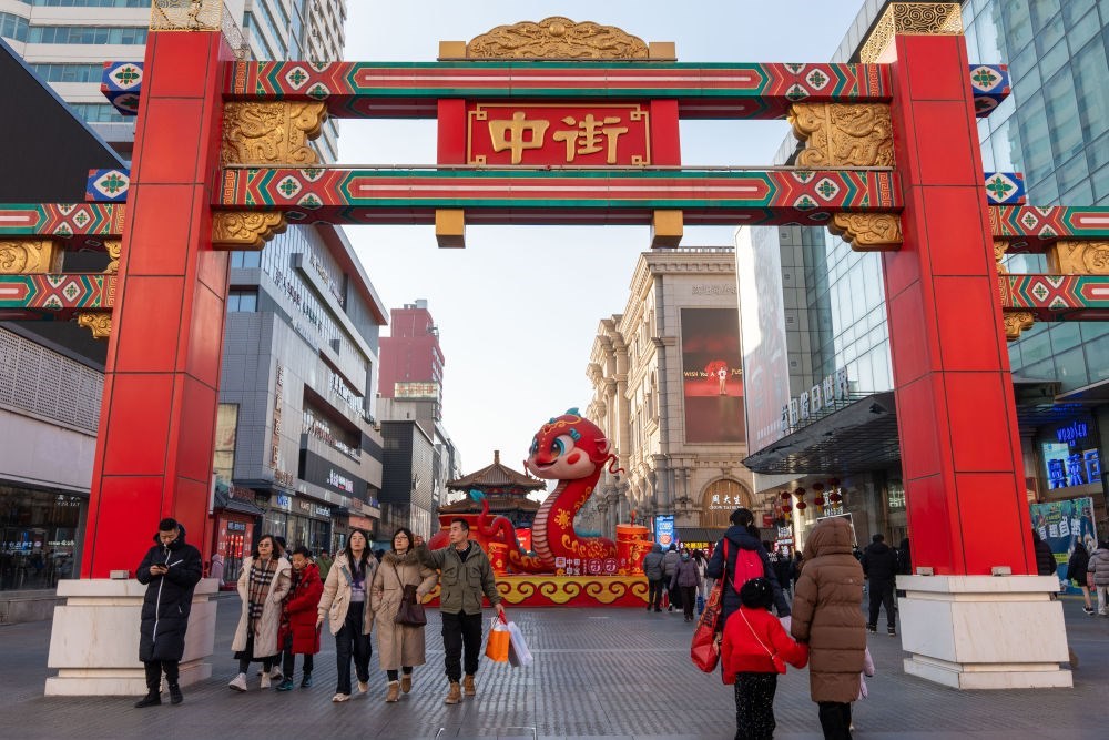 2025年1月22日,游客在沈陽中街長安寺胡同小吃街游玩。