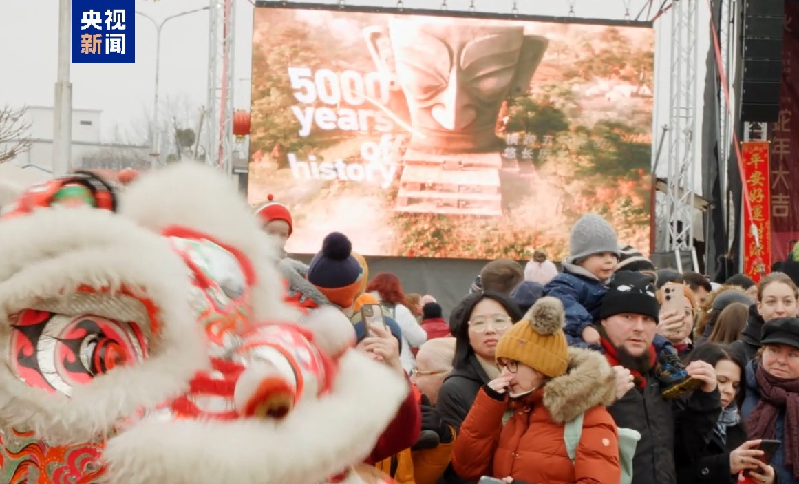 △中央廣播電視總臺(tái)蛇年春晚宣傳片在匈牙利吸引大量游客駐足觀看,在喜氣洋洋的氣氛和獨(dú)特魅力的中華文化中感受中國(guó)春節(jié)的熱烈氛圍。