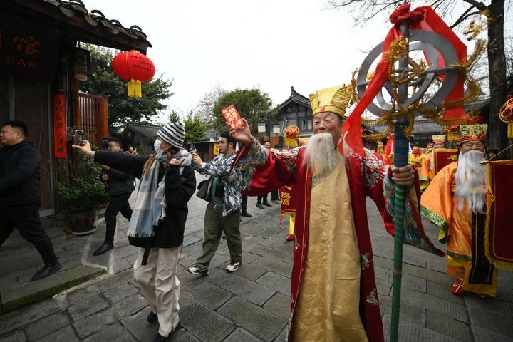 打坱塵、淘檐溝、掛年紅、搶銀水、看燈戲……在閬中古城過大年,來自天南地北的游客沉浸式感受中國(guó)年。