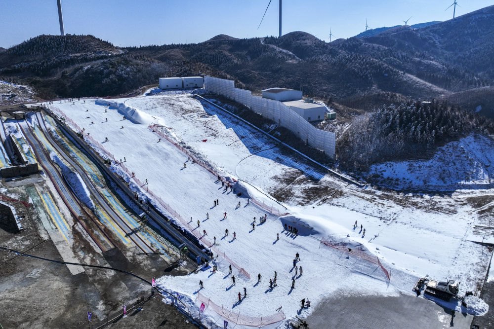 2025年1月23日,游客在湖北神農架中和國際滑雪場滑雪。湖北省神農架林區(qū)冬季降雪量豐富、雪質蓬松,為中部地區(qū)滑雪愛好者提供了良好的練習環(huán)境。