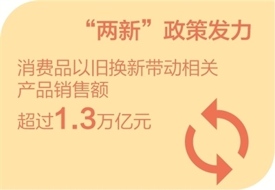 商務部新聞發(fā)言人何詠前:中央經(jīng)濟工作會議提出,大力提振消費。初步統(tǒng)計,2024年,全國汽車以舊換新超過680萬輛,超3600萬名消費者購買8大類家電以舊換新產(chǎn)品超過5600萬臺,家裝廚衛(wèi)“煥新”補貼產(chǎn)品約6000萬件,電動自行車以舊換新超過138萬輛。消費品以舊換新帶動相關產(chǎn)品銷售額超過1.3萬億元。