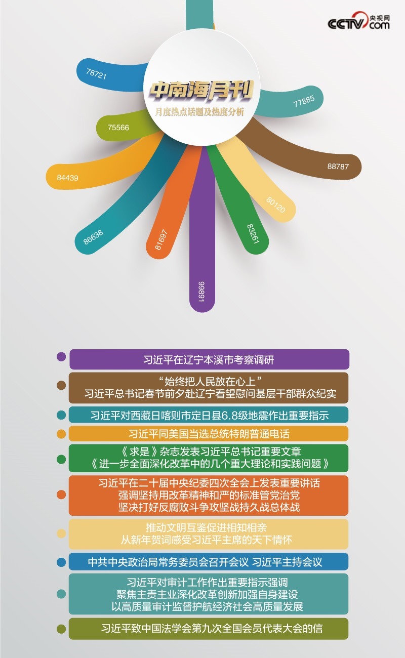 央視網(wǎng)《中南海月刊》運(yùn)用智能大數(shù)據(jù),與您一起回顧習(xí)近平總書(shū)記2025年的元月足跡。