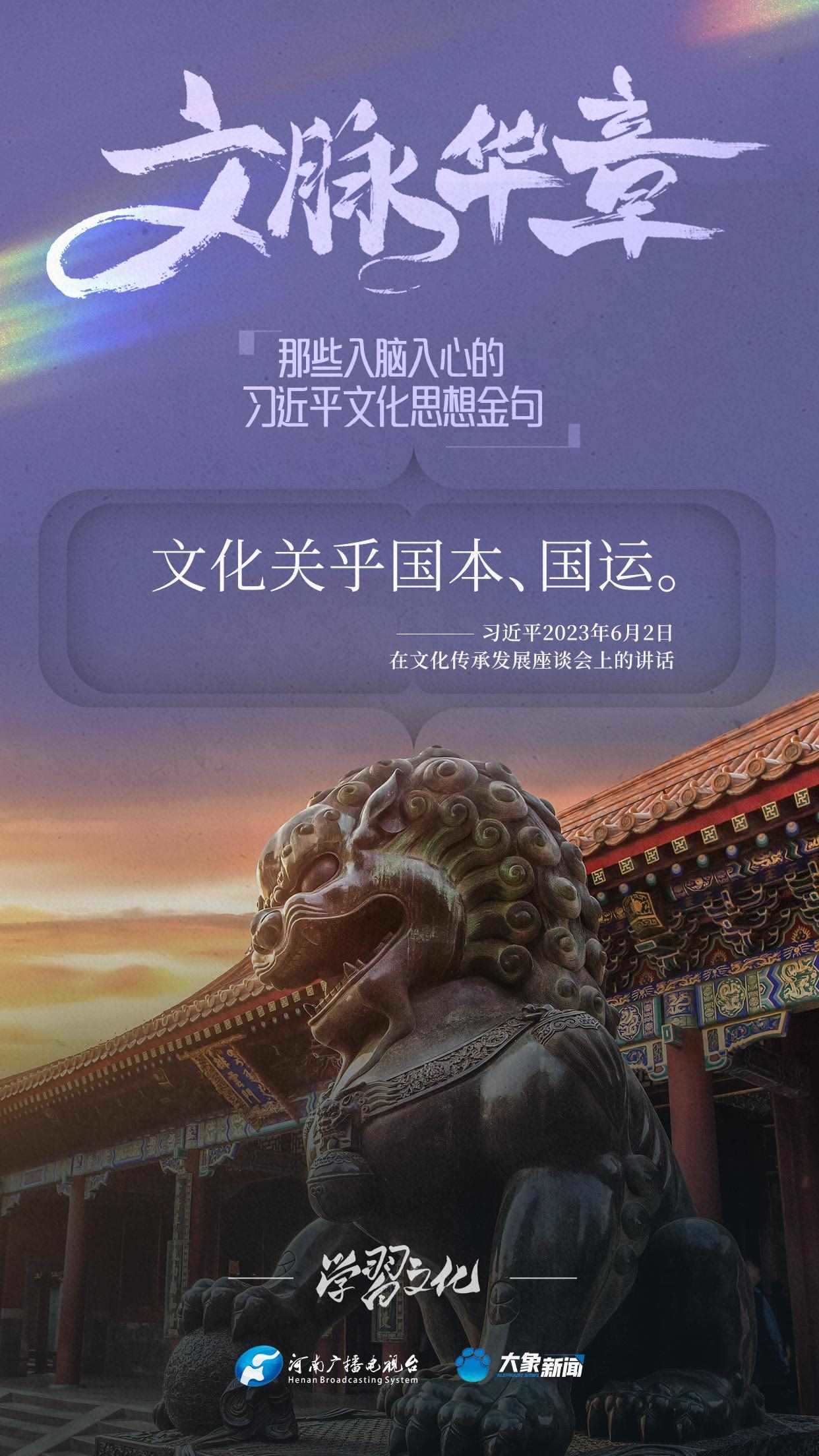 大象新聞將持續(xù)梳理,推出系列策劃《那些入腦入心的習(xí)近平文化思想金句》,邀您一起認(rèn)真品讀。今天推出《文化是一個國家、一個民族的靈魂》。