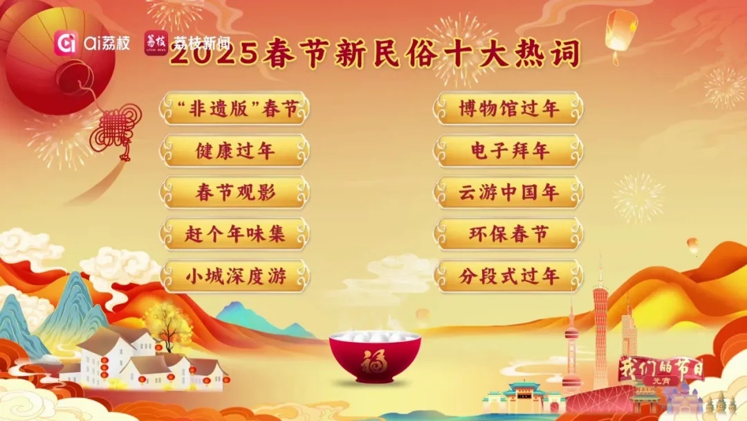 此次網(wǎng)友票選出的前十名新民俗熱詞涉及春節(jié)相關(guān)的節(jié)點(diǎn)大事,傳遞出千姿百態(tài)的過節(jié)方式,映射了時(shí)代變遷下不斷更新的過節(jié)態(tài)度,不同的春節(jié)“打開方式”,哪個(gè)詞語與你最有共鳴呢?