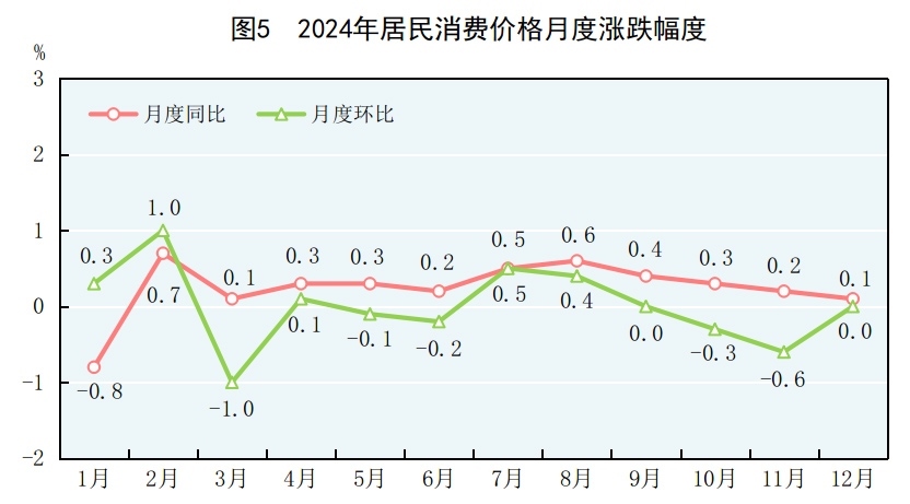 全年居民消費(fèi)價(jià)格比上年上漲0.2%。工業(yè)生產(chǎn)者出廠價(jià)格下降2.2%。工業(yè)生產(chǎn)者購(gòu)進(jìn)價(jià)格下降2.2%。農(nóng)產(chǎn)品生產(chǎn)者價(jià)格[9]下降0.9%。12月份,70個(gè)大中城市中,新建商品住宅銷售價(jià)格環(huán)比上漲的城市個(gè)數(shù)為23個(gè),持平的為4個(gè),下降的為43個(gè);二手住宅銷售價(jià)格環(huán)比上漲的城市個(gè)數(shù)為9個(gè),持平的為1個(gè),下降的為60個(gè);新建商品住宅銷售價(jià)格同比上漲的城市個(gè)數(shù)為2個(gè),下降的為68個(gè);二手住宅銷售價(jià)格同比下降的城市個(gè)數(shù)為70個(gè)。