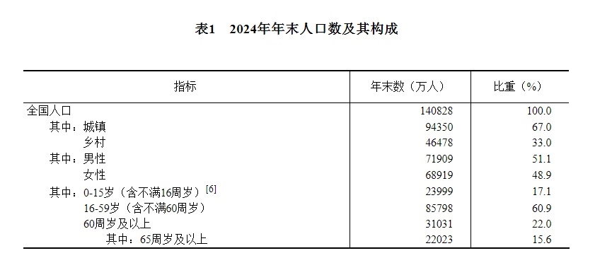 [6]2024年年末,0-14歲(含不滿15周歲)人口為22240萬人,15-59歲(含不滿60周歲)人口為87557萬人。
