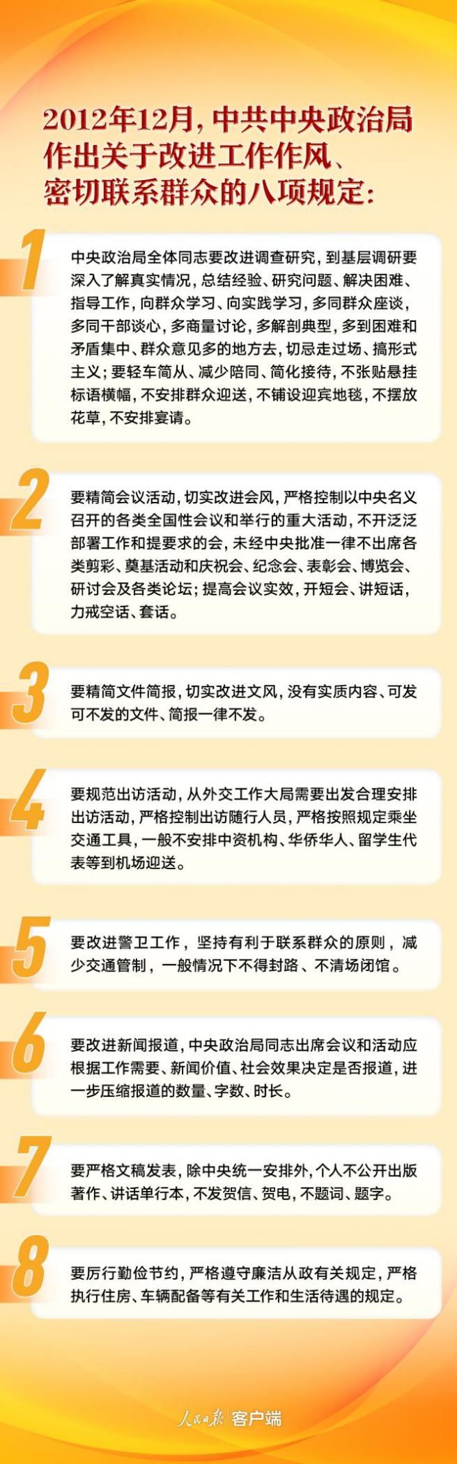 “中央八項(xiàng)規(guī)定不是五年、十年的規(guī)定,而是長(zhǎng)期有效的鐵規(guī)矩、硬杠杠。”十多年來(lái),以習(xí)近平同志為核心的黨中央始終把持之以恒貫徹執(zhí)行中央八項(xiàng)規(guī)定精神、加強(qiáng)作風(fēng)建設(shè)放在突出位置來(lái)抓,作出了一系列重大決策部署。