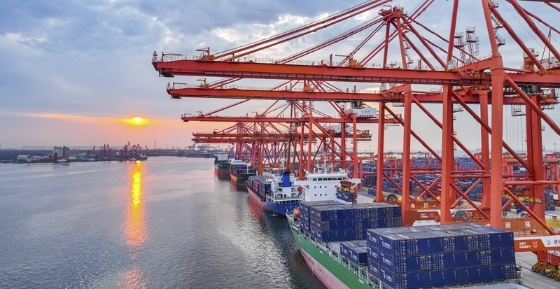 6月16日,輪船停泊在河北唐山港京唐港區(qū)集裝箱碼頭作業(yè)(無人機(jī)照片)。5月份,全國規(guī)模以上工業(yè)增加值同比增長5.8%。