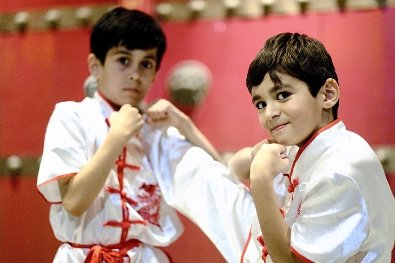 2024年6月11日,在塔吉克斯坦首都杜尚別,愛好中國武術(shù)的當(dāng)?shù)貎和瘏⒓铀怂固姑褡宕髮W(xué)孔子學(xué)院的武術(shù)表演排練。新華社記者 鄭開君 攝