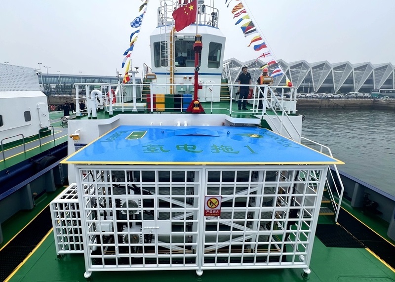 6月26日,國內(nèi)首艘氫電拖輪——“氫電拖1”輪在山東港口青島港入列。該拖輪搭載“氫燃料電池+液冷鋰電池”混動系統(tǒng),可實現(xiàn)零碳排放。據(jù)介紹,與傳統(tǒng)燃油拖輪相比,“氫電拖1”輪在噪音控制、設備壽命、能源利用效率等方面優(yōu)勢顯著。該輪投產(chǎn)后,預計每年可減少二氧化碳排放1500余噸。