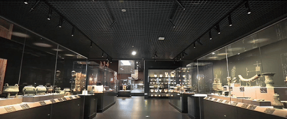 碩大篆書“史”字高懸于建筑外墻,兩座西周銅犧尊造型石像矗立門前……走進(jìn)中國歷史研究院中國考古博物館,仿佛叩開了中華文明探源的大門。