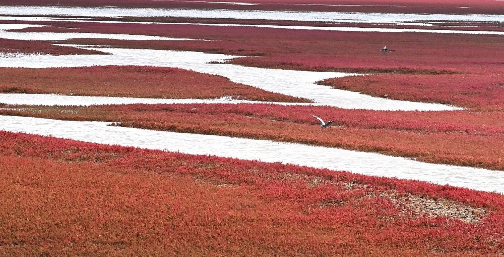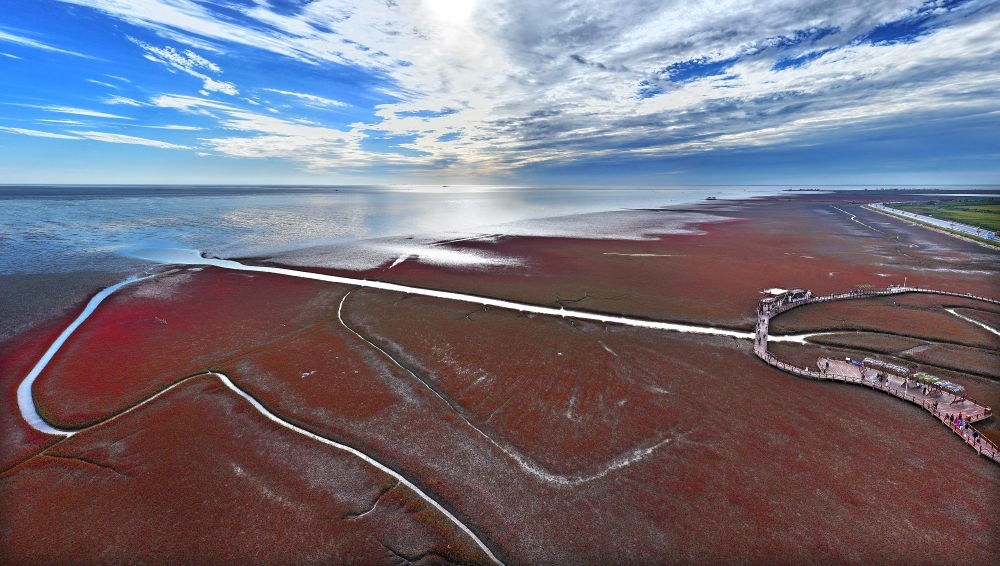 遼寧海濱,北緯39度的海風(fēng)掠過(guò)浮光躍動(dòng)的海灣,丹頂鶴在紅海灘間蹁躚起舞;海岸線上,執(zhí)法船在巡航,電子眼守護(hù)著潔凈的沙灘;沙灘上,志愿者拾起漂浮的塑料瓶……交織成一幅動(dòng)人的生態(tài)畫(huà)卷。
